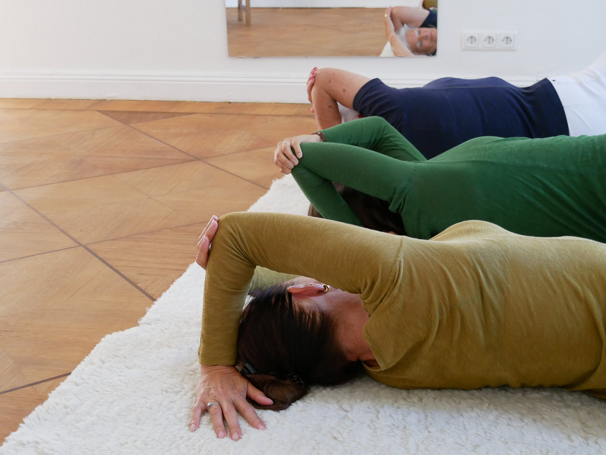 Viele Stunden finden im Liegen auf einer bequemen Matte auf dem Boden statt. Als Ausgangspunkt nutzen wir alltägliche Bewegungsabläufe, die spielerisch variiert und neu kombiniert werden.